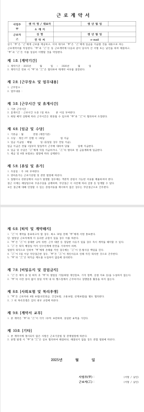 근로계약서 양식 공유